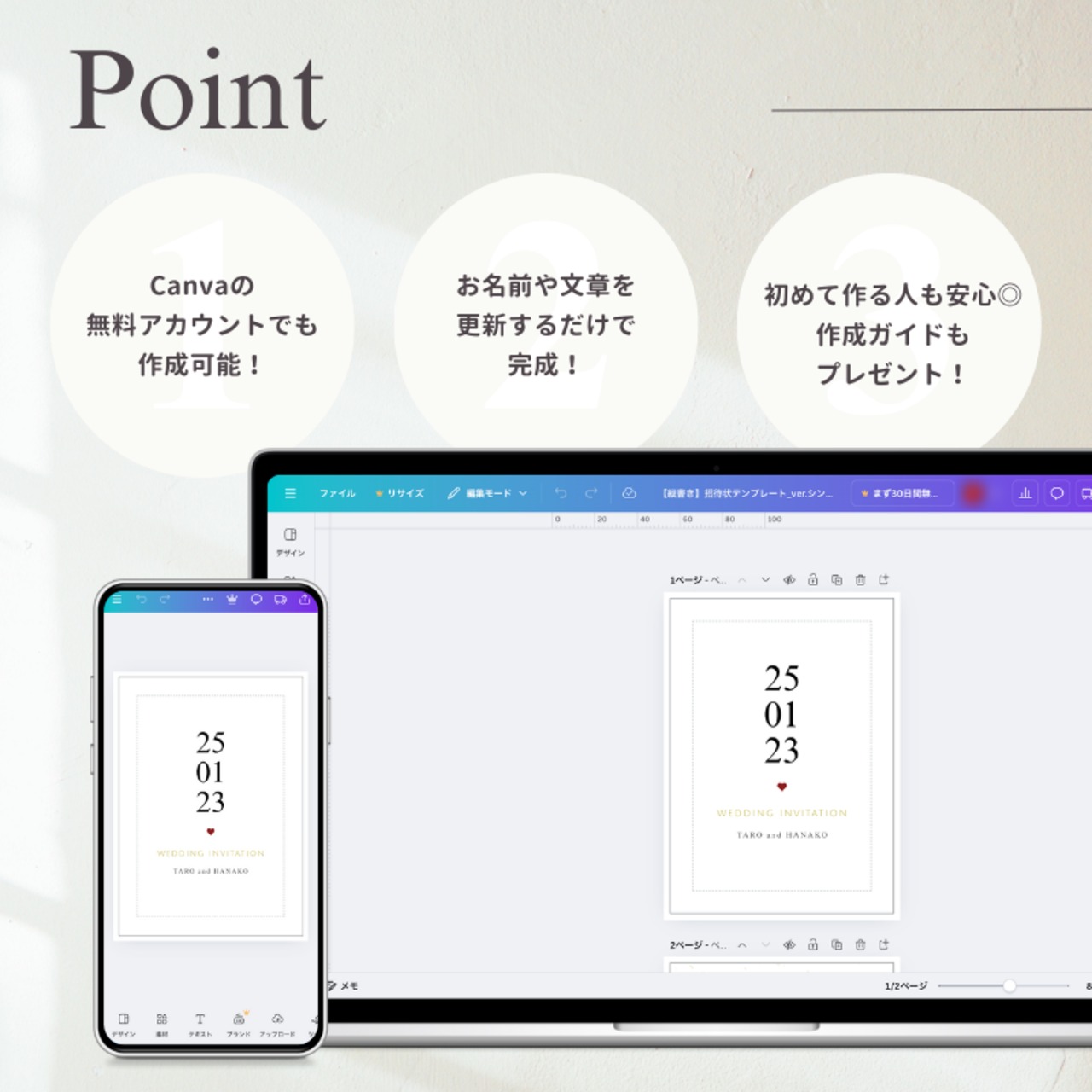 ・Canvaテンプレートの作成ガイド付きのため、簡単に編集可能です
